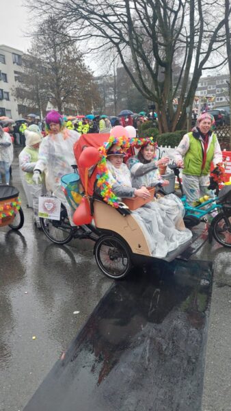 Für die Jugendlichen der Lebenshilfe war der Tag ein Meilenstein. Jasmin Soika vom FuD ergänzt: „Für unsere Kinder und Jugendlichen ist die Teilnahme am Rosenmontagszug ein großartiges Erlebnis von Selbstwirksamkeit und Teilhabe. Gemeinsam mit den Rikschas mitten im Geschehen zu sein, bedeutet für uns gelebte Inklusion ohne Wenn und Aber.“