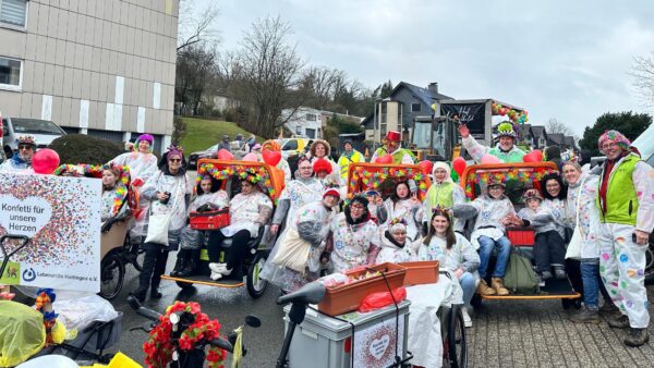 HATTINGEN-HOLTHAUSEN, 17. Februar 2026 – Windböen, Kälte und zeitweiser Starkregen konnten die Lebensfreude nicht bremsen: Beim 48. Rosenmontagszug in Holthausen feierte eine besondere Kooperation ihre emotionale Premiere. Unter dem Motto „Konfetti für unsere Herzen ️“ setzten das ADFC-Rikscha-Projekt „Radeln ohne Alter“ und der Familienunterstützende Dienst (FuD) der Lebenshilfe Hattingen ein leuchtendes Zeichen für Mobilität, Inklusion und gelebte Vielfalt.